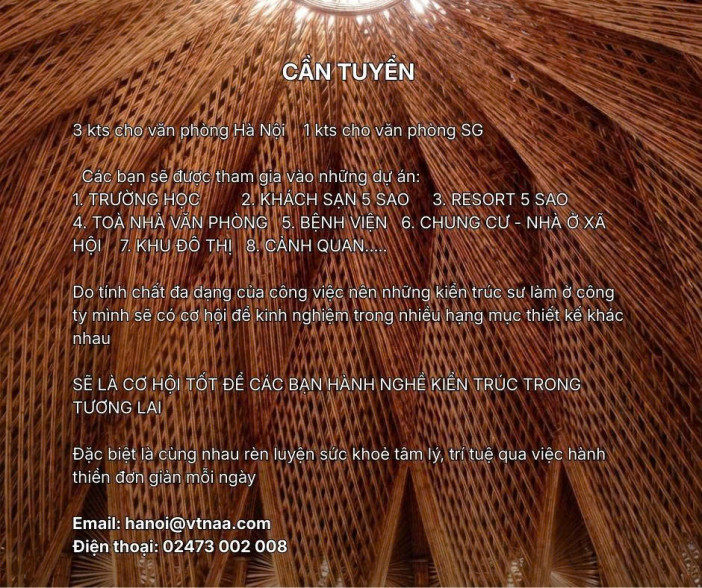 Công ty Võ Trọng Nghĩa cần tuyển 03-04 kiến trúc sư ở văn phòng Hà Nội và văn phòng Sài Gòn