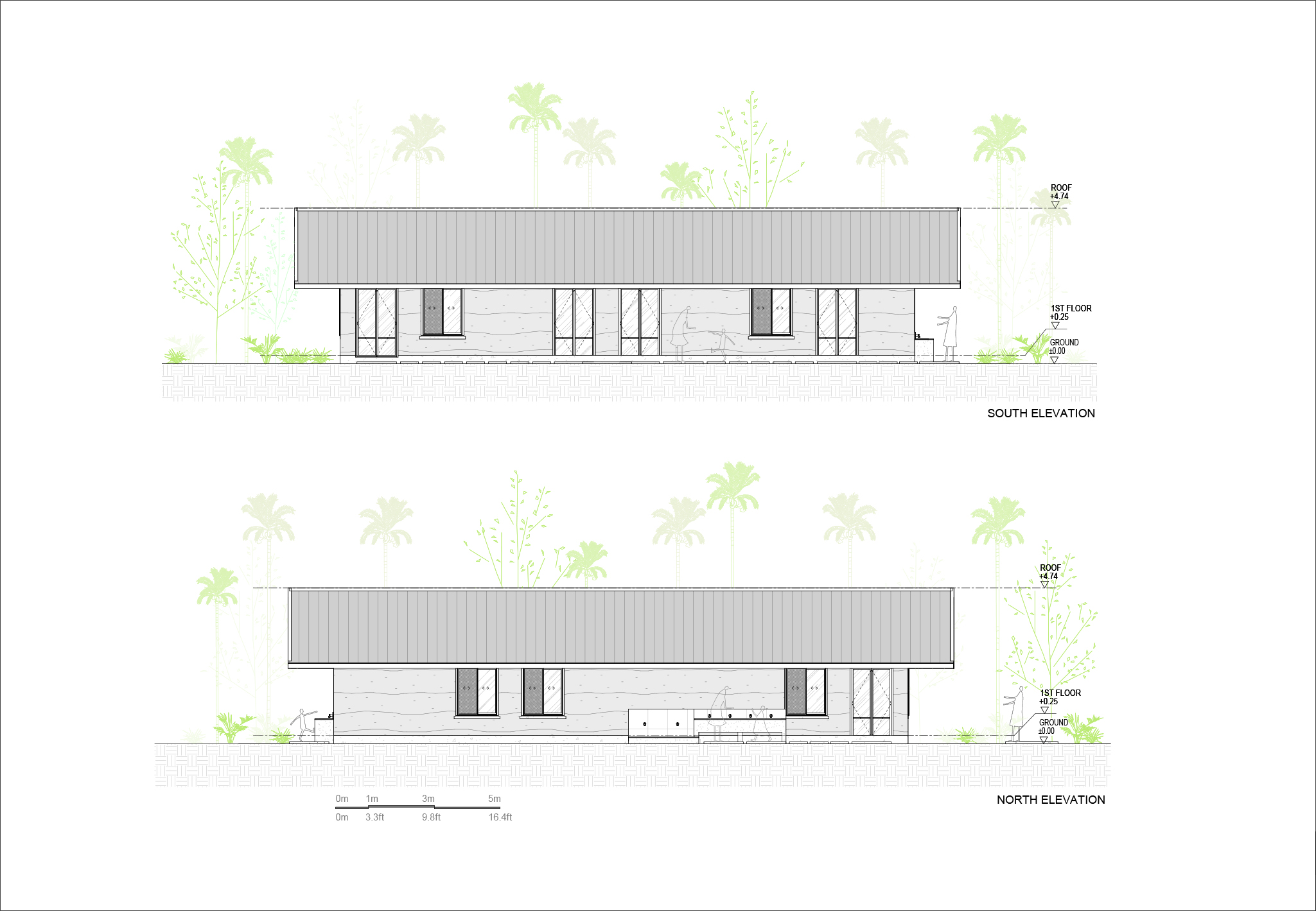Large, symmetrically placed windows on either side of each classroom allow for maximum natural lighting and airflow. This configuration enables effective ventilation, maintaining a comfortable and well-ventilated learning environment suited to the humid tropical climate. Given the region^s relatively cool temperatures, these basic ventilation strategies are sufficient to create a favorable microclimate for the classrooms, minimizing the need for mechanical systems and energy use.