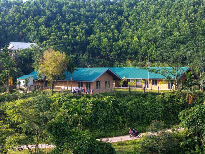 Các khoảng đệm như hiên và hành lang ngoài trời không chỉ bảo vệ tường đất khỏi nước mưa, mà còn hỗ trợ vi khí hậu và đóng vai trò là không gian trung gian – nơi diễn ra các hoạt động bán chính thức, từ vui chơi đến sinh hoạt nhóm. Với quy mô nhỏ, cấu trúc đơn giản, vật liệu địa phương, chú trọng tính ổn định và bền vững, ngôi trường thể hiện một giải pháp kiến trúc trường học giản dị, hiệu quả, phù hợp bối cảnh và gắn bó với địa phương, trở thành một điểm kết nối cộng đồng.